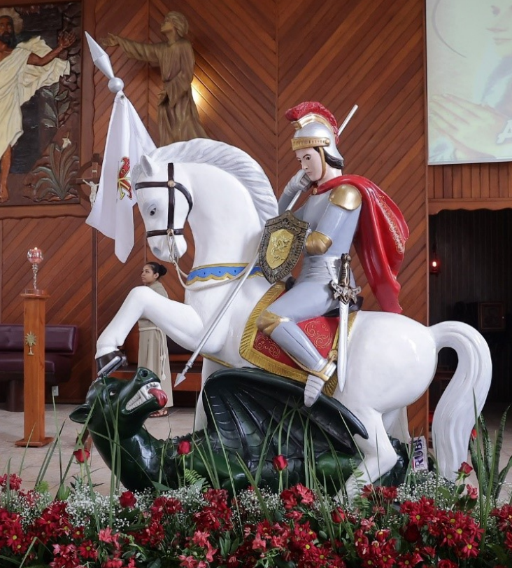 A solenidade de nosso padroeiro São Jorge este ano foi muito bonita e participativa. Desde o tríduo (20/21 e 22) até o encerramento ocorrido no dia 23, quando as atividades iniciaram com a santa missa às 6h, 7h30 e 10h30, assim como o café da manhã, almoço e diversas atividades realizado no decorrer do dia, encerrando-se no final da tarde com a tradicional procissão, que percorreu as ruas do bairro São Jorge. Onde os fiéis devotos tiveram a alegria de demonstrar sua fé caminhando atrás do andor do santo mártir. Com velas, objetos que representam promessas alcançadas e entoando cânticos e orações de agradecimentos e louvores.
